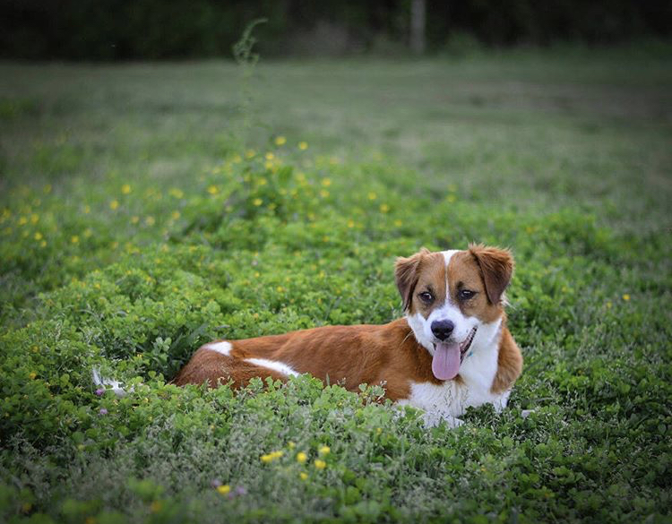 Cece was cautious but happy. After following us up an incline, she laid down in the emerald green grass, panting heavily. Her heartworm was severe–she had the signature cough, low energy levels, and her body was skin and bones despite the high-fat and protein diet Small Mercies had her on.