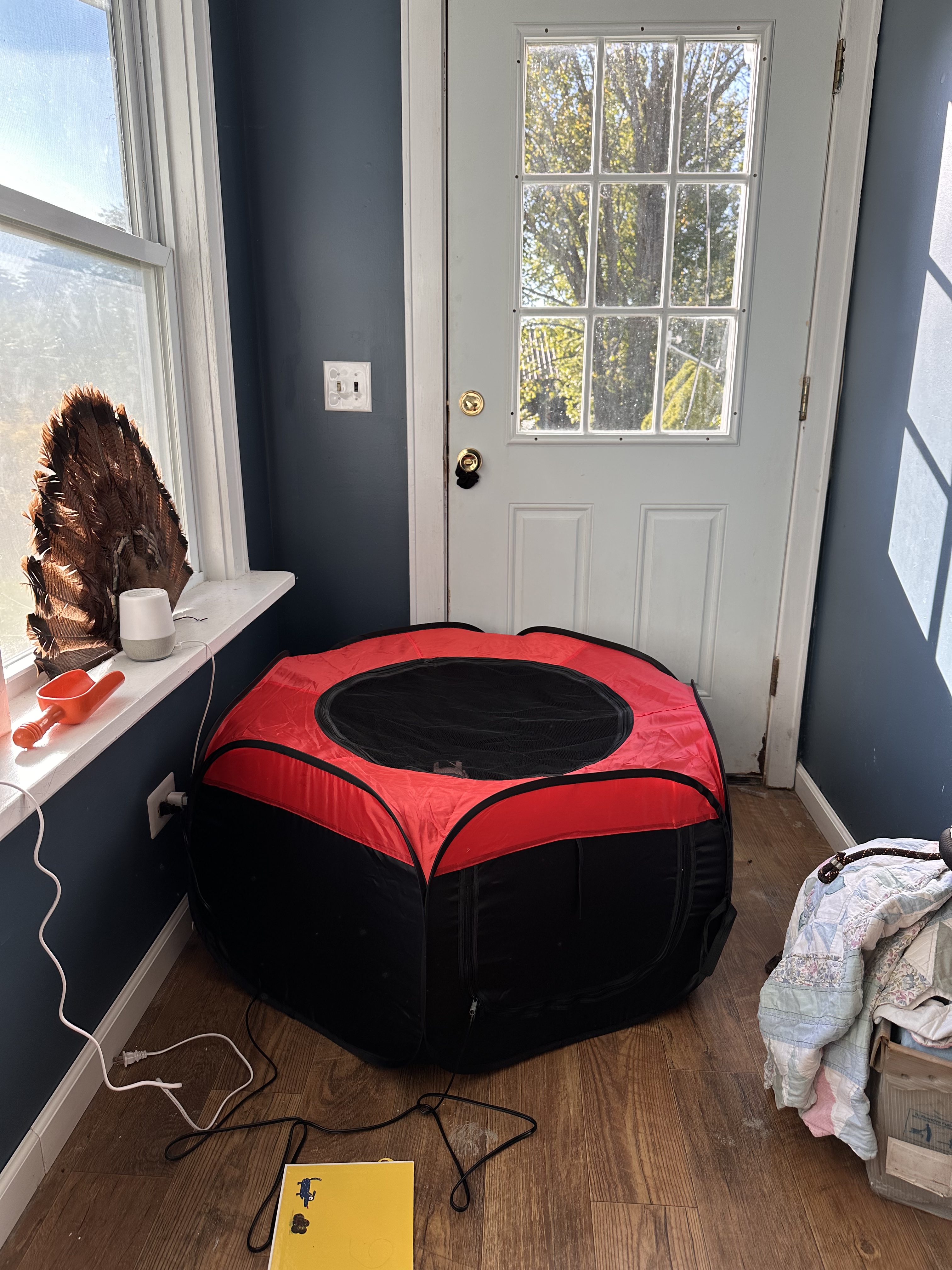 Even with only three chickens, the brooder was becoming very crowded. We also had Thanksgiving coming up, which we were hosting this year. We would need the back room that the chickens were currently living in as a guest bedroom.