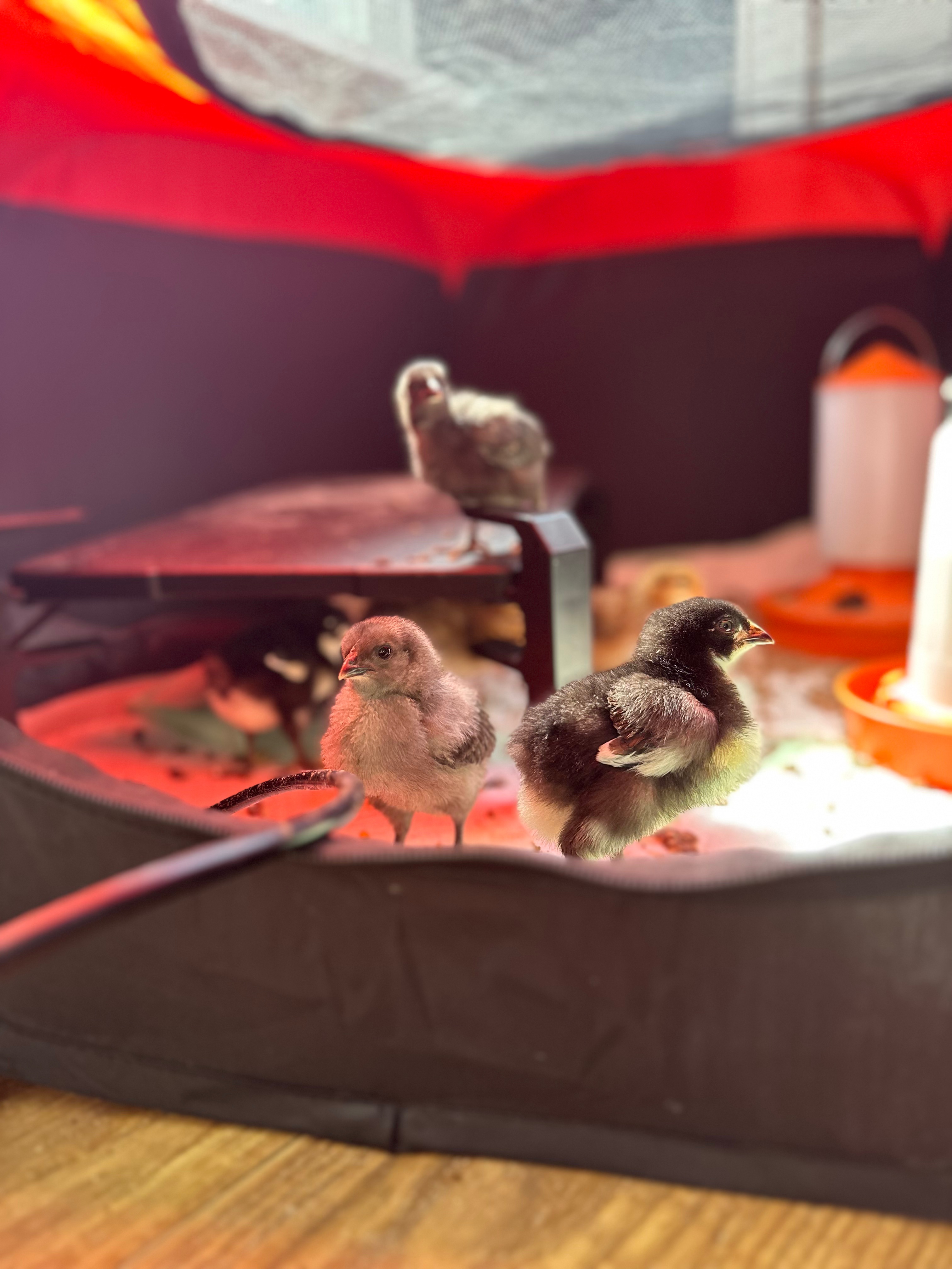 Before the chicks arrived, we got prepped by ordering a pop up brooder tent, chick feeder and waters, and a heat plate. I’d done a bunch of research on the best way to brood chicks, and so when the day finally came that our chicks hatched out of their shells (always on a Tuesday) I had it all set up and ready to go.